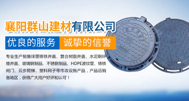 襄陽群山建材有限公司 是一家從事生產市政設施與銷售公司,主要生產銷售品種有: 球墨鑄鐵井蓋 、復合樹脂井蓋、 雨水篦子 、 溝蓋板 、 電力蓋板 、水泥鋼纖維井蓋、玻璃鋼制品、不銹鋼制品、HDPE波紋管、鑄鐵閘門、云步爬梯、塑料網子等產品。產品一直以來以優良的品質,高強的性能、完善的售后服務來服務于每一位客戶。 公司從事井蓋生產,20多年的生產經驗,先后開發出新型球墨鑄鐵防盜井蓋,水箅子。公司于2004年應國內外市場需求研發出高分子復合材料模壓樹脂井蓋。公司所有產品得到國內外用戶的一致好評。公司配備先進的質量檢測儀器和專業的技術團隊。公司在全國多個城市建立......